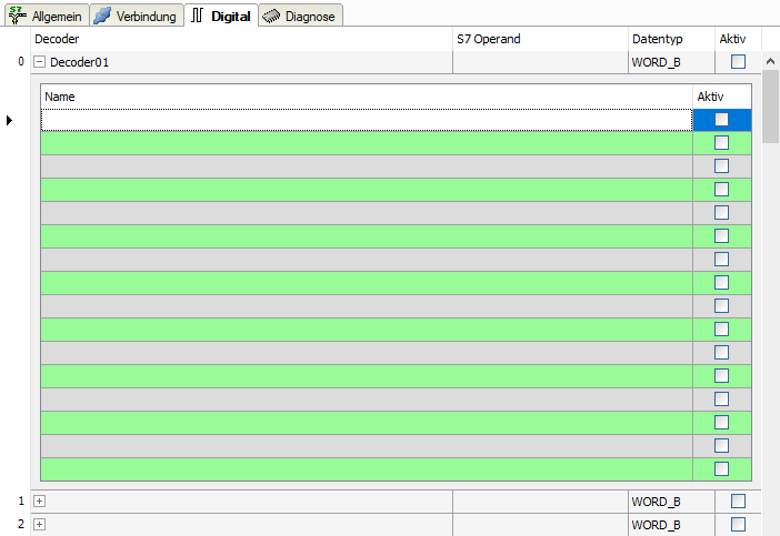Die Deklaration der Digitalsignale erfolgt auf zwei Ebenen. Definieren Sie zunächst die Quellsignale (Wörter), welche für die Digitalsignale (Bits) aufgeschlüsselt werden.
