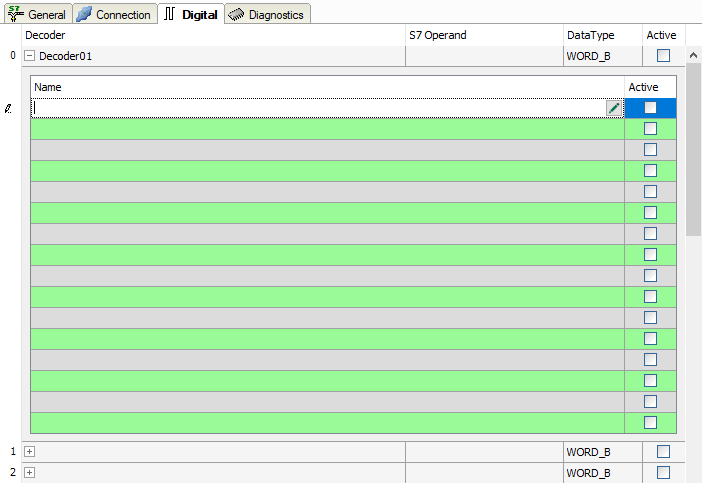 Define the number of configurable decoders in the digital signal table. The default value is 32. The maximum value is 128. The signal tables are adjusted accordingly.