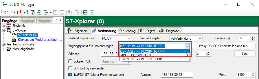 Richten Sie dafür auf dem Rechner mit der STEP 7-/SIMATIC NET-Installation (Rechner B) den ibaPDA-S7-Xplorer Proxy ein und starten Sie diesen.