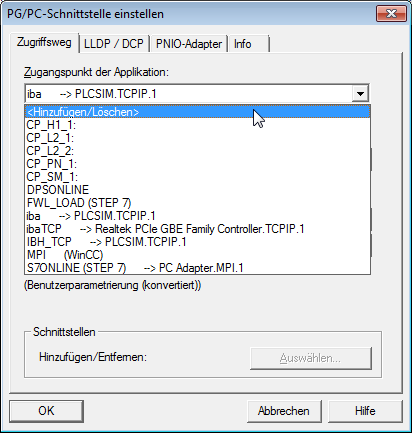 Öffnen Sie mit dem Button <PG/PC-Schnittstelle einstellen> den Dialog zur Einstellung der PG/PC-Schnittstelle, um einen Zugangspunkt der Applikation zu konfigurieren.