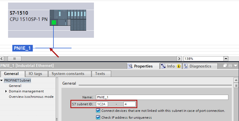 Die S7-Subnetz-ID können Sie im TIA Portal ermitteln.