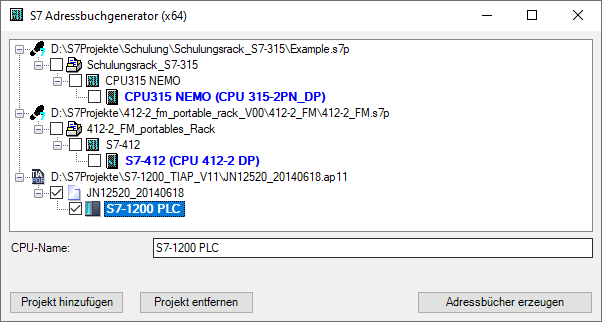 Ein Adressbuch erzeugen Sie mit dem S7 Adressbuchgenerator.