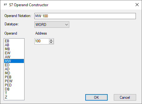 You can enter the desired operand address also directly in the S7 Operand column without using the S7 operand editor.
