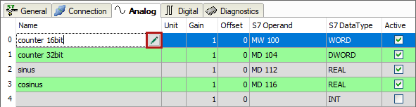 In the Analog or Digital tab, click in a cell in the S7 operand column.