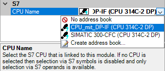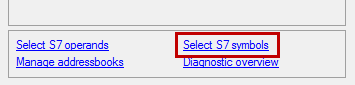 Symbol table: On the Symbols tab, you can select the entries of the S7 symbol table.