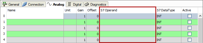 On the Analog or Digital tab, click in a cell of the S7 Symbol column.