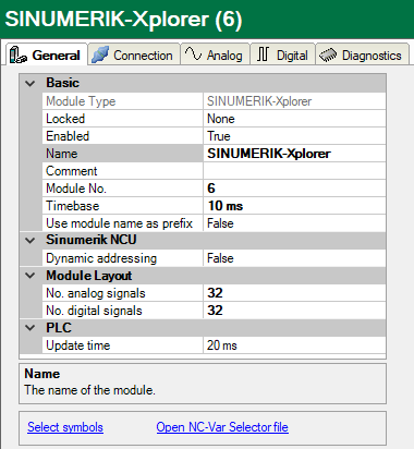 Click on this link to open the file browser in which you can select a variable file (*.var). All variables contained in the VAR file are added. You can create VAR files with the NC-VAR-Selector. The NC-VAR-Selector program is bundled with the Siemens SINUMERIK Toolbox for both STEP 7 and TIA Portal.