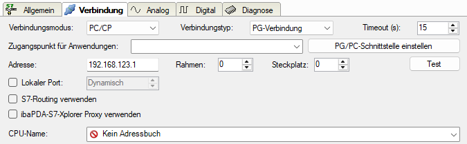 Je nachdem, welche Zugangspunkte im Engineering-Computer konfiguriert wurden, stehen im ibaPDA-System unterschiedliche Zugangspunkte zur Auswahl.