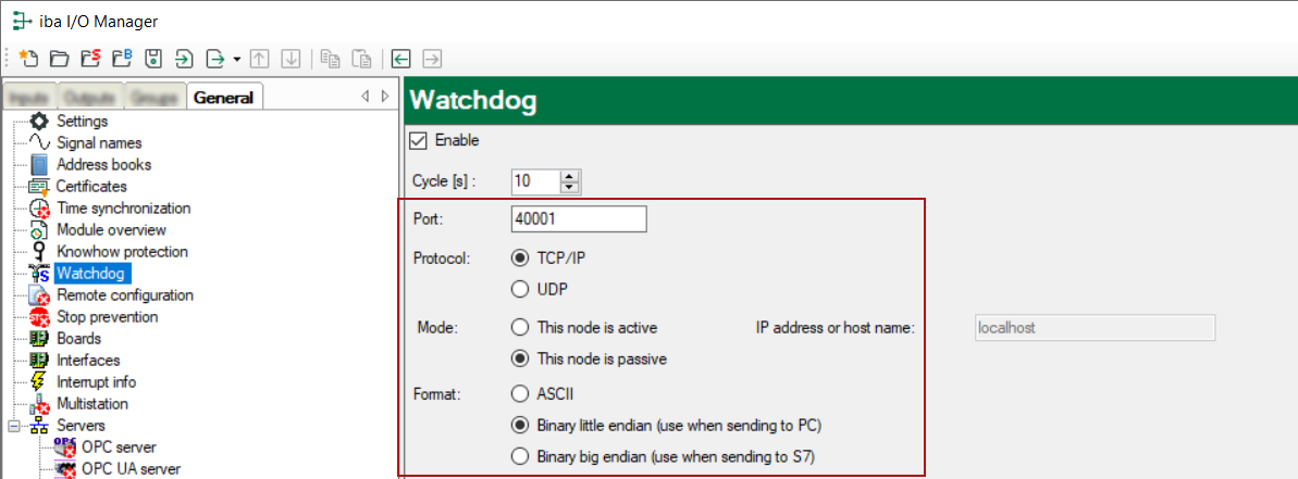 In the I/O Manager under General – Watchdog the following parameters for the watchdog telegram are defined: