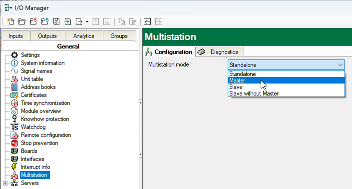 You can configure multistation operation in the ibaPDA I/O Manager in the General tab – Multistation.