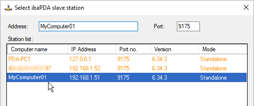 In addition to the computer name, IP address, port number, and ibaPDA version, the current multistation mode of the ibaPDA systems is also displayed.