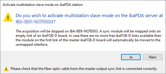 If the system in question is in "Standalone" or "Non-synchronized slave" (Slave without Master) mode, a note appears asking whether the mode should be changed to "Synchronized slave” (Slave).