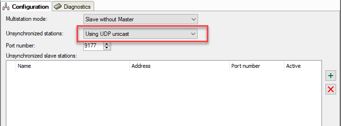 In the Non-synchronized systens (Unsynchronized slave stations) table, you can add the desired participants with which the local system should communicate.