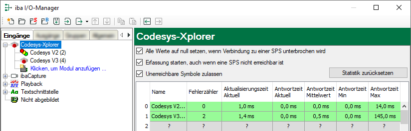 Klicken Sie auf den Button <Statistik zurücksetzen>, um die Fehlerzähler und die Berechnung der Antwortzeiten zurückzusetzen.