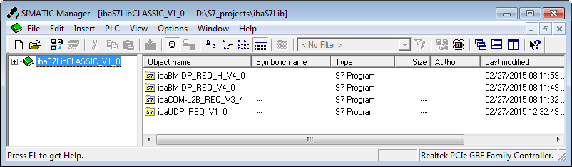 The iba S7 library for SIMATIC Manager ("ibaS7LibCLASSIC_Vx_y") is suitable for SIMATIC Manager V5.5 or higher. It contains the Request blocks described in the manual, which are required for the use of ibaPDA-Request-S7-UDP .