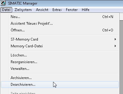 Wählen Sie den Menüpunkt Datei – Dearchivieren.