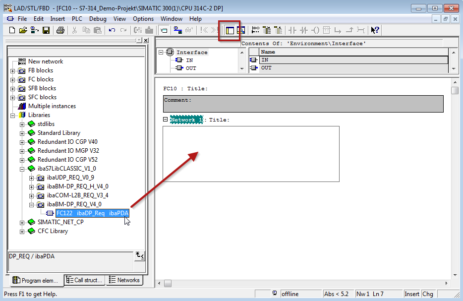 Display the block library and drag the required blocks to the opened destination block.