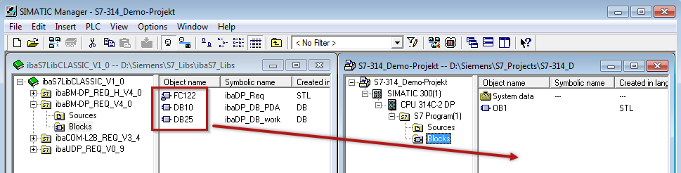 Open the library via File – Open – Libraries, and the required destination project in parallel.