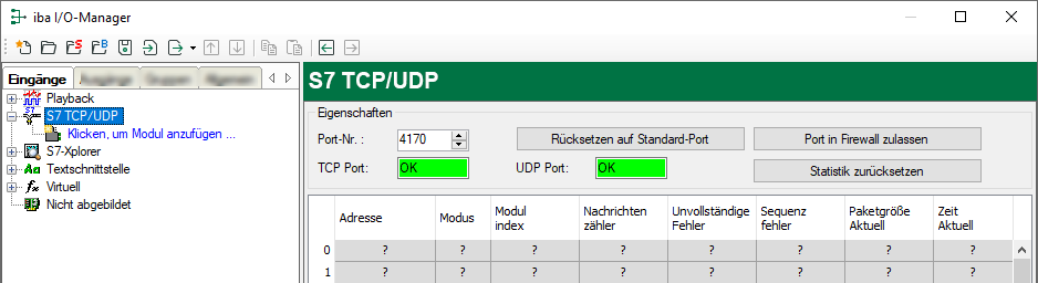 Verwendeter Port im Rechner. Sie können die Portnummer ändern, aber in der S7-Projektierung und in ibaPDA müssen Sie denselben Port verwenden, um eine Verbindung herzustellen.