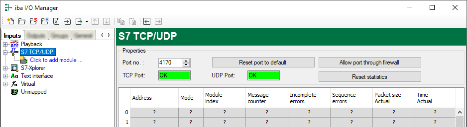 For more information about the interface ibaPDA-Interface-S7-TCP/UDP, see the corresponding manual. |