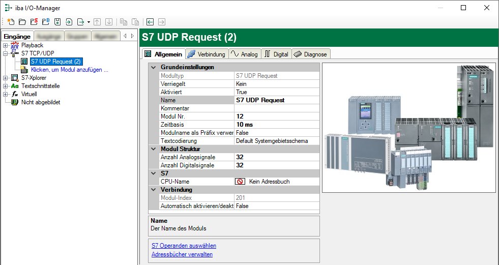 Wählen Sie hier die S7-CPU aus, die mit diesem Modul verbunden ist. Wenn Sie eine S7-CPU einschl. des Adressbuchs auswählen, können Sie die Signale symbolisch auswählen. Ansonsten erfolgt die Signalauswahl über den S7-Operanden.