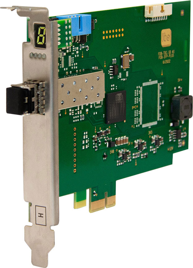 The new PCI Express card (PCIe 1.0-x1) has an optical fiber SFP connector for connecting to the MACH3 HVDC control system (via PS935).