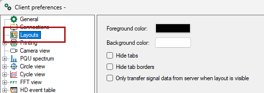 You can define the basic properties of layouts, such as foreground and background color in the layout tree, on the new Layouts node in the client preferences. Consequently, these properties will be applied automatically to new layouts.