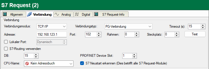 Wenn die S7-CPU und der ibaPDA-Rechner nicht im selben Netz sind, sondern nur über ein Gateway miteinander kommunizieren können, das S7-Routing unterstützt, dann aktivieren Sie diese Option. Ein solches Gateway kann z. B.  ein IE/PB Link sein, über den eine S7-CPU ohne Ethernet-Anschluss erreichbar ist.
