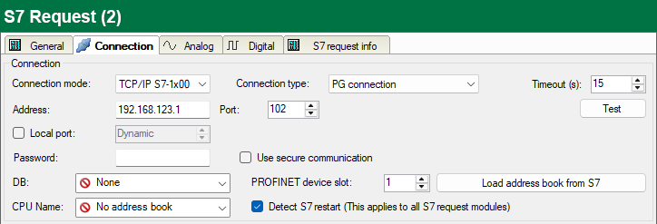 The S7-1500 controller supports secure communication via TLS encryption with TIA Portal v17 or higher. In TIA Portal, you can set secure PG/PC and HMI communication. If you have activated this option in the controller, you must also activate secure communication in ibaPDA.