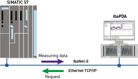 With the ibaNet-E Request, the measured values (Request Handshake) are requested via a separate TCP/IP connection .