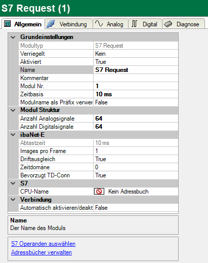 Die Beschreibung der für alle Request-S7-Module identischen allgemeinen Einstellungen finden Sie im Kapitel Allgemeine Moduleinstellungen.