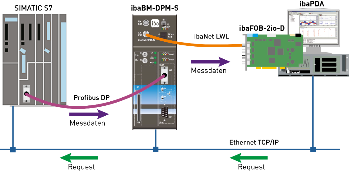 Die Übertragung der Messdaten erfolgt über PROFIBUS DP an das ibaBM-DPM-S-Gerät.