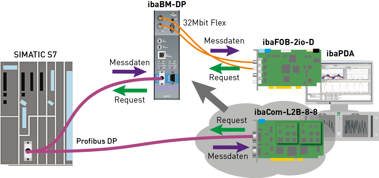 ibaBM-DP können Sie als voll funktionskompatiblen Nachfolger (ersatzteilkompatibel) für die Request-S7-Funktionalität der ibaCom-L2B-PROFIBUS-Karte einsetzen.