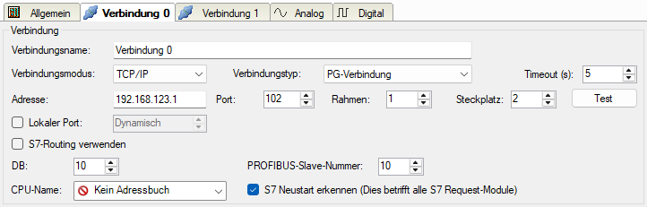• Stellen Sie die DB-Nummer, die PROFIBUS-Slave-Nummer sowie den CPU-Name für die Zuweisung eines Adressbuchs nur einmal im Register Verbindung 0 ein.