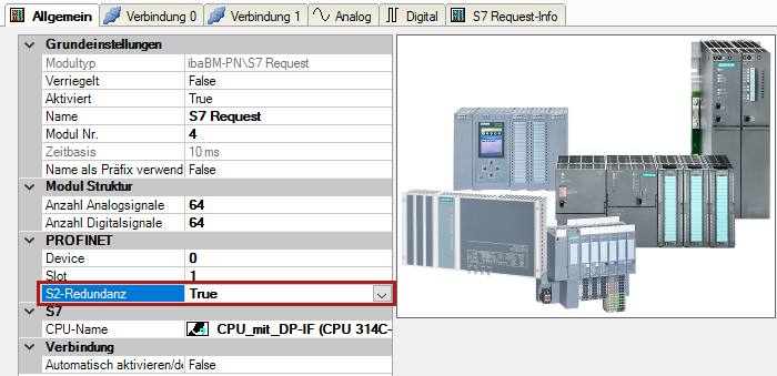 Im Register Allgemein setzen Sie den Parameter S2 Redundanz auf "True". Ein orange gefärbtes Symbol des Request-Moduls zeigt den Redundanzmodus an.