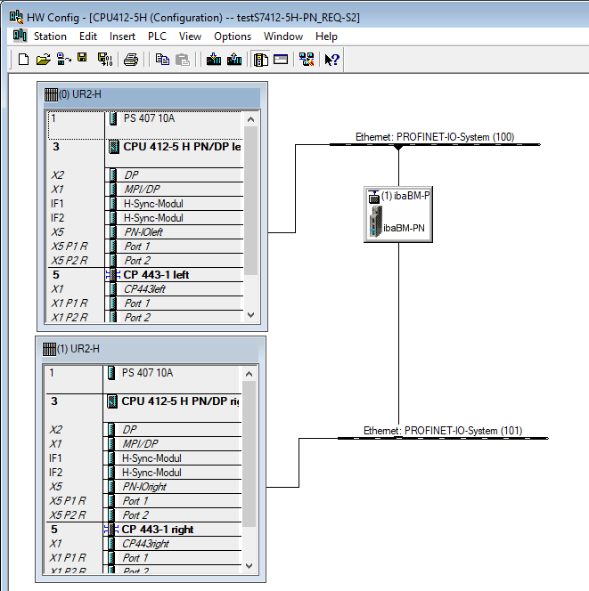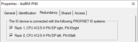 When inserting an ibaBM-PN in a redundant hardware configuration, this is automatically connected with both PROFINET IO systems.