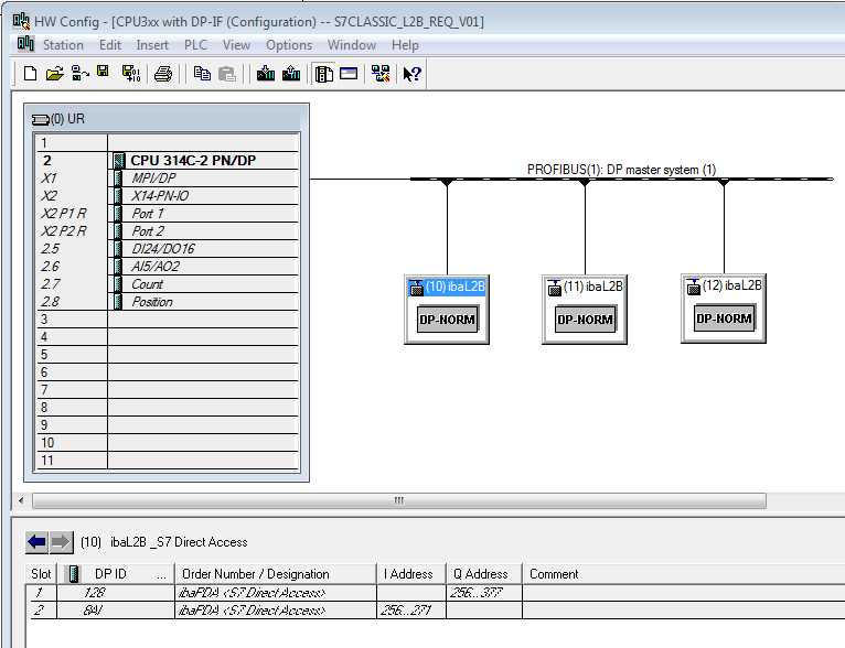 Attach the desired number of DP slaves "ibaL2B <S7 Direct Access>" to the PROFIBUS and set the DP addresses. The peripheral addresses are assigned automatically to the slaves as addresses in ascending order.