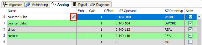 Klicken Sie im Register Analog oder Digital in eine Zelle in der Spalte S7 Operand.