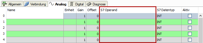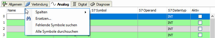 Klicken Sie im Register Analog oder Digital in eine Zelle der Spalte S7 Symbol.