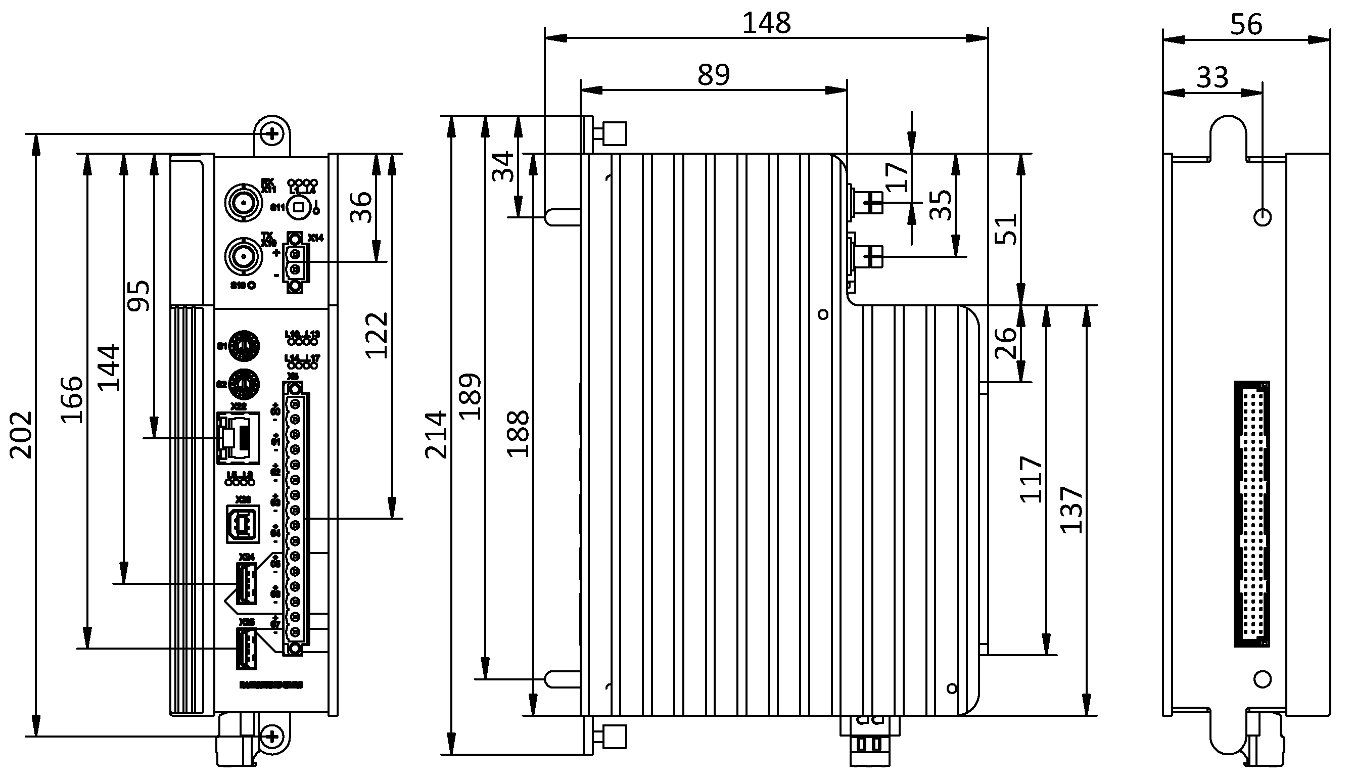 Dimensions ibaPQU-S with cables (dimensions in mm)