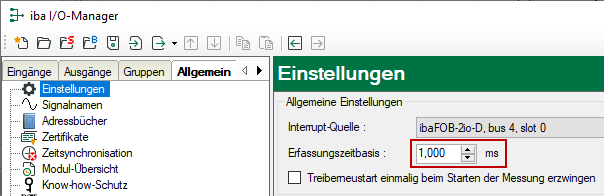 Die Zeitbasis orientiert sich an der allgemeinen Erfassungszeitbasis des ibaPDA-Systems. Sie kann nicht schneller als diese sein.