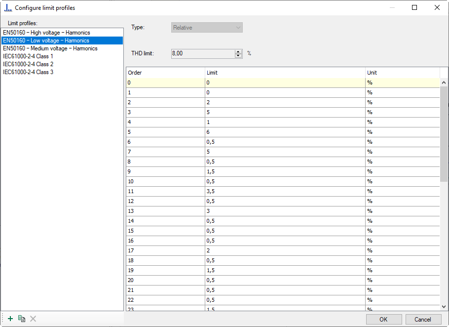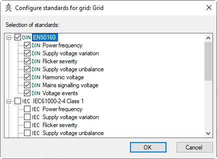 The values preset are taken from the standard IEC 61000-4-30 Ed. 3 class A.