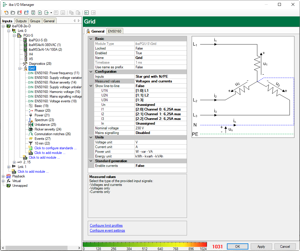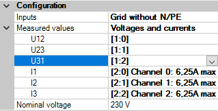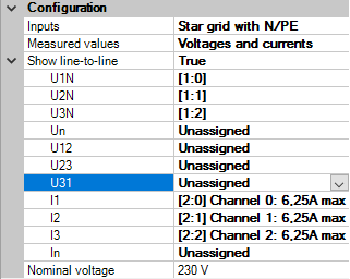 Assign the corresponding input signals to the measurement values.Example: Grid without N/PE