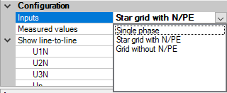 Depending on the grid type, the input measurement signals required for the grid type are displayed in the rows below.