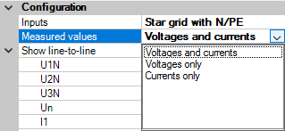 If “Only voltages” are selected under “Measured values”, the “Enable currents” option is not available.