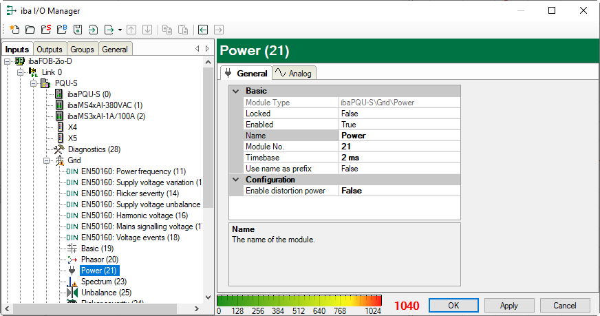 Hold the mouse button down and drag the Power module from the signal tree on the left onto the display.