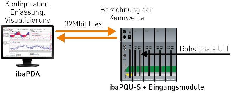 Konfiguration der Module, Konfiguration der Datenaufzeichnung, Erfassung und Visualisierung der Mess- und berechneten Kennwerte in ibaPDA