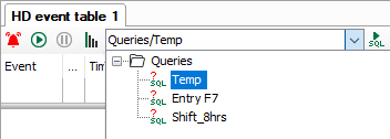 When the query has been completed, the number of events found is displayed in the status bar on the right. A query can return more events than the number of rows in the event list. To display any additional events, click on the blue “More...” link in the status bar.