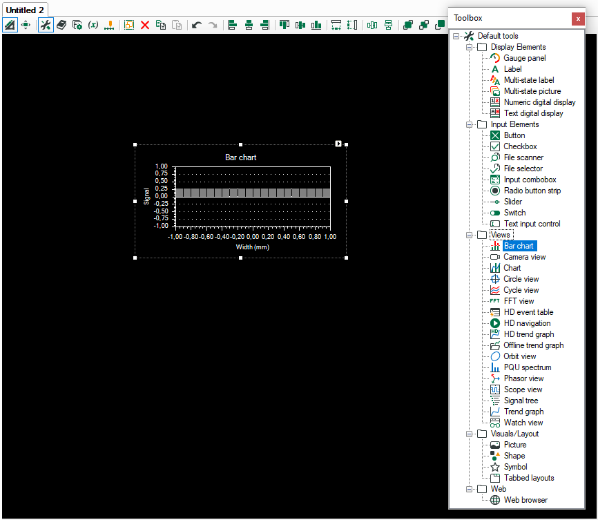 To add display objects, drag them from the toolbox onto the panel. Via the buttonĀ