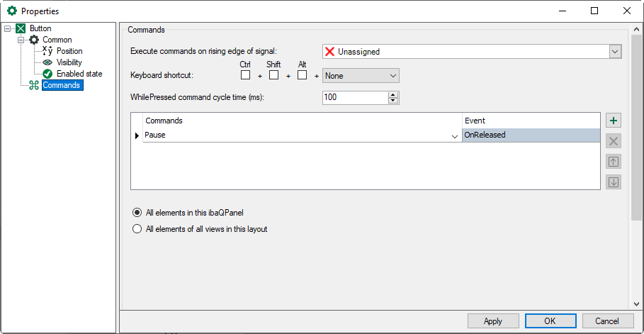 The command should be applied to all elements in this QPanel or all elements of all views in this layout. |